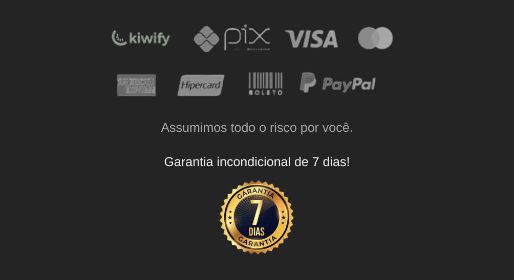 Sim, 100% seguro. A transação é realizada pela Kiwify, uma plataforma segura e totalmente livre de riscos.