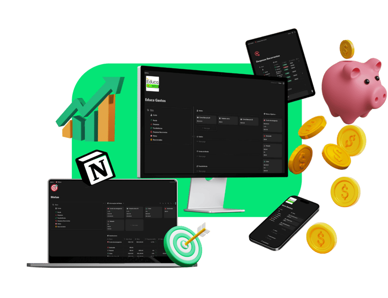 Ao garantir a compra do Educa Gastos você vai receber de imediato além da plataforma de gestão de finanças educa gastos, um guia com detalhes de como usar a ferramenta Notion, e após 7 dias de sua compra você receberá de forma 100% gratuita 3 Ebooks completos sobre gestão financeira, dicas de como criar e manter uma reserva de emergência.